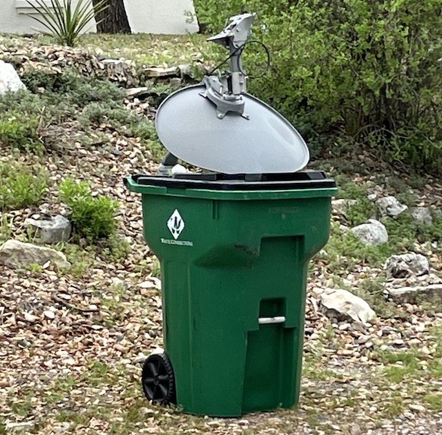 Fantastic flowers, John. For the bin with the dish, how about the song from Queen: Another One Bites the Dust? Gotta love that fiber where it’s available.