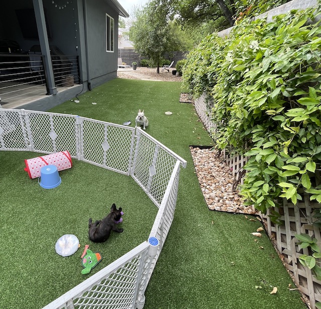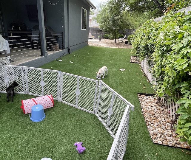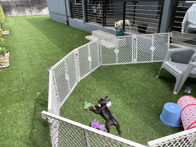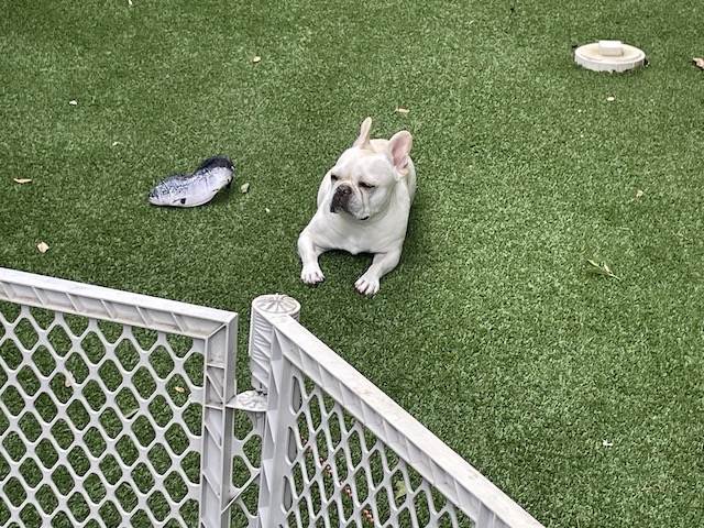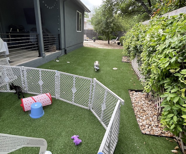 “Well sometimes it is nice to have my own space but it is fun to run in the yard. Can you break me out of here?”