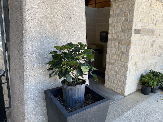 The plants were all laid out ahead of time. Here’s a hibiscus ready to be planted.