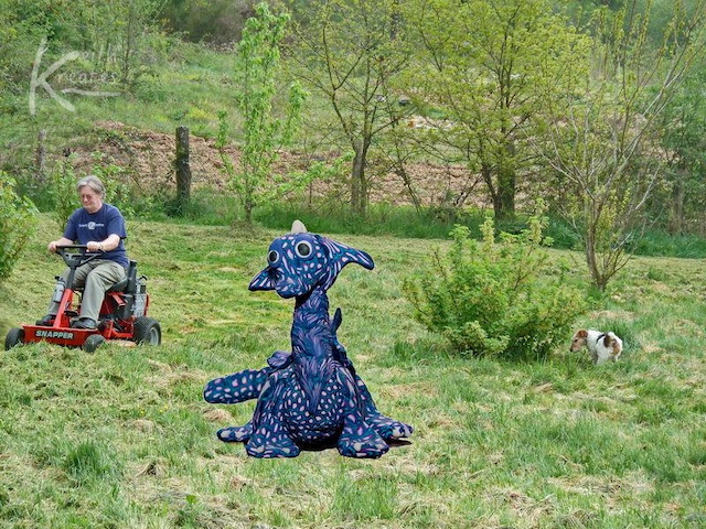 hahahaha.. The purple silly monster.. how could he miss it. It looks like something out of the Flintstones cartoon. Send him my way.. the rands would love it I’m sure..but it would cost you an arm and a leg to get it her. ha😂😂💕