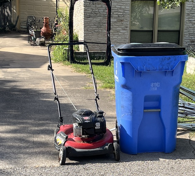 Lawnmower at the curb – First sign of lawn trouble.