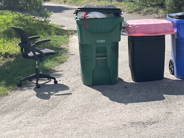 Office chair and kiddie pool at the curb – First sign that working from home is over.