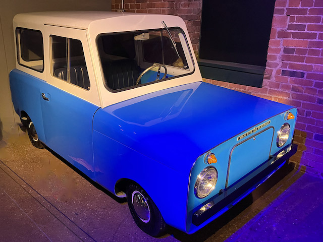 I thought the electric car was a kiddie car. Fred Flintstone’s mode of transport also came to mind.