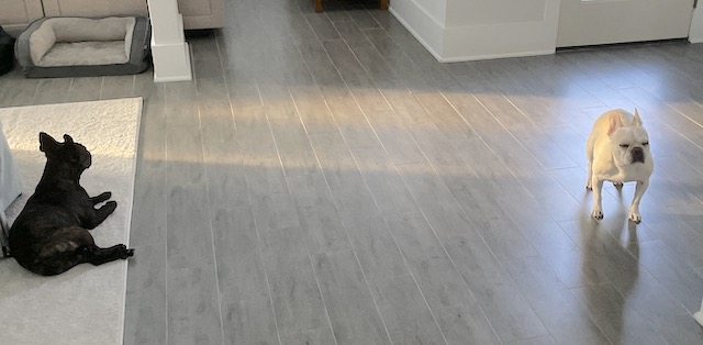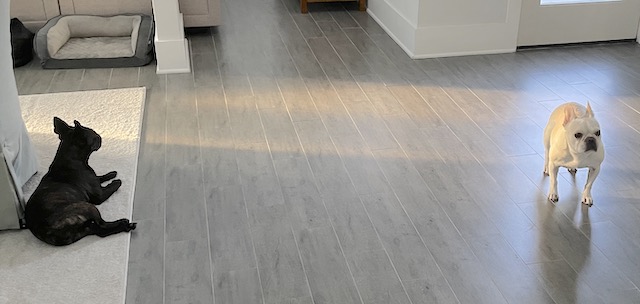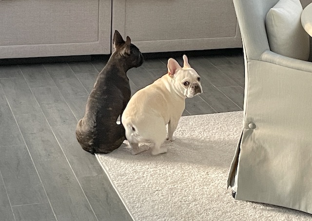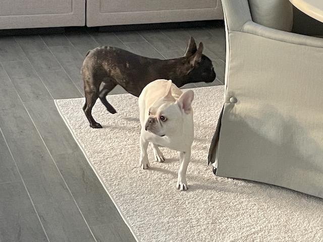 Twiggy and Tempeste are SO cute! Dogs don’t speak English, so they bark, either to declare their territory or to say hello.