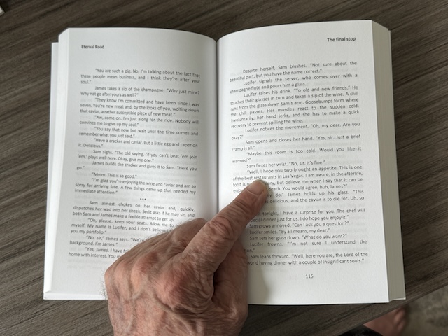Today, I randomly opened the first book in the Eternal Road series; Eternal Road – The final stop.