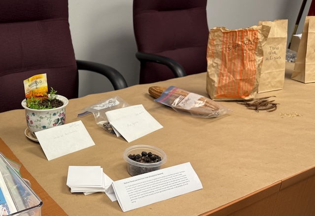 The seed library. When taking seeds record what was taken. When returning seeds record what was returned.
