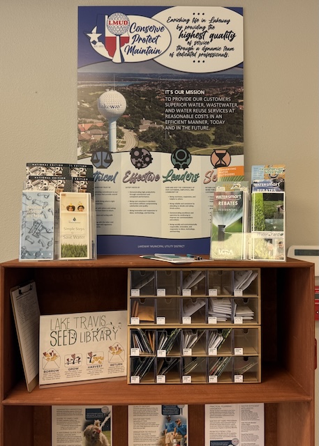 Today, we are visiting the Lakeway Municipal Utility District (LMUD) for an open house and to check out the seed library. LMUD had an open house on Earth Day, and through the miracle of the time clock, we can go back and take a look. We are catered by Stella San Jac of Austin. Our entertainment is Simon and Garfunkel