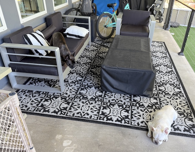 Of course the girls are delightful, but here’s an unrelated question: is that black and white rug new? I don’t remember seeing it before, and it’s exceptionally attractive!