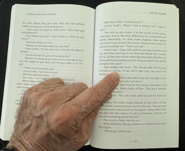Today, I opened Detour on the Eternal Road to page 247. With eyes closed, I pointed to the page. My finger was closest to the word”vehicle.” This is our prompt today.