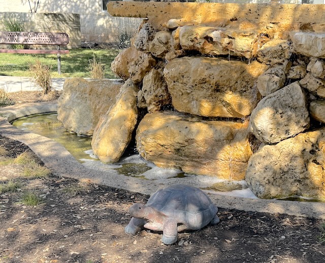 Yeah, we have a lot of water features around town. It is so cute cause the plants and animals in the water are all plastic..