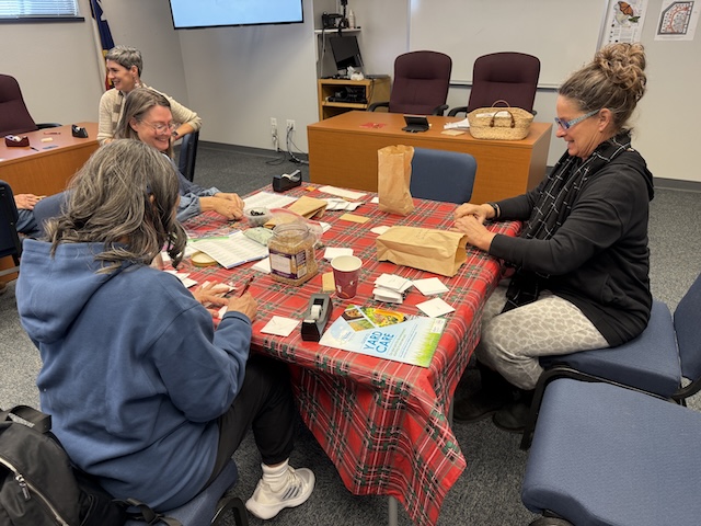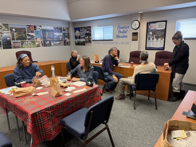 Today is an in-between kind of day. The Holidays are past, and the New Year is in front of us. It is a good time to take a look at the deciduous trees that have finally turned here in Texas. It is also a good time to check in with the volunteers who are busy restocking the seed library. We are catered by Comedor of Austin, and our entertainment is Elsie Duckworth