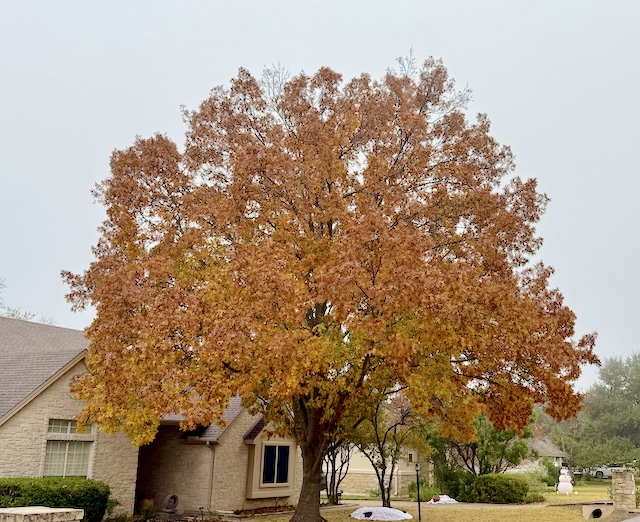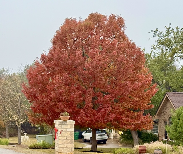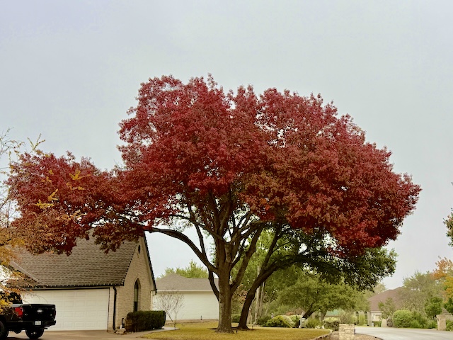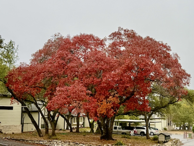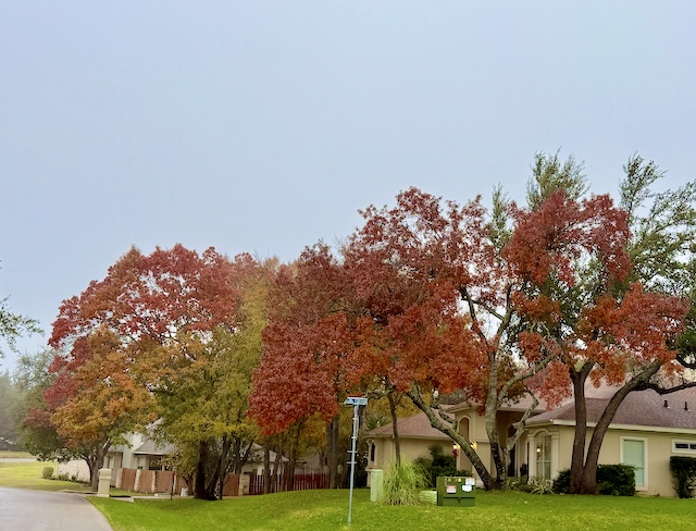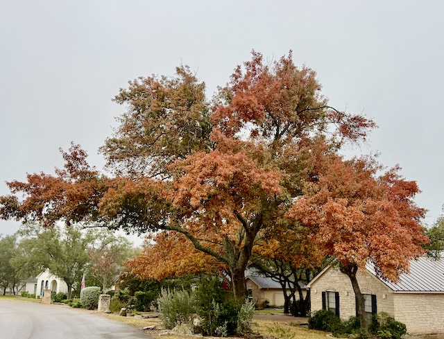 Most of the deciduous trees in Lakeway are oaks, so there is a lot of red. The color time is very short.