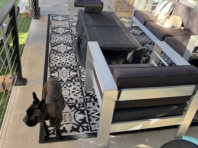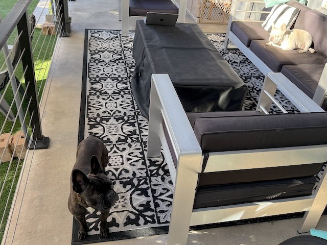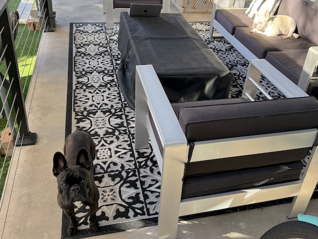 It’s nice to see Twiggy and Tempeste enjoying the sun, John, and good that they haven’t been sprayed by the skunk. A doggie door could be non-helpful.