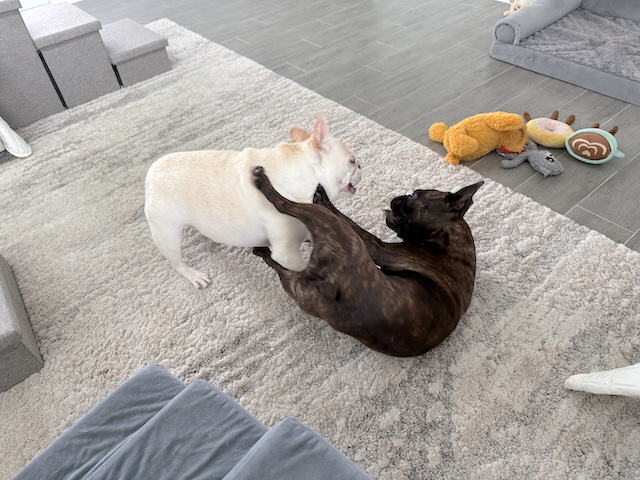They are so cute when they play fight! It gives them a good work out too.