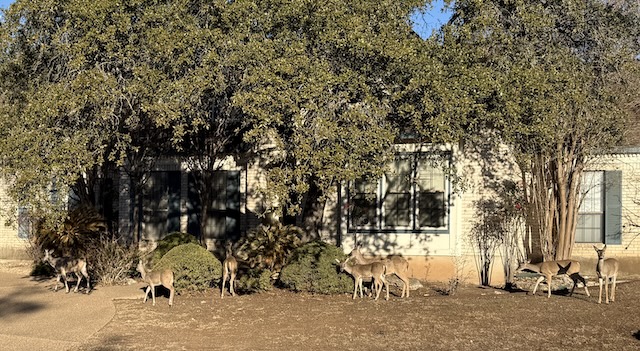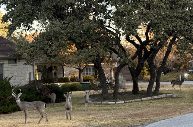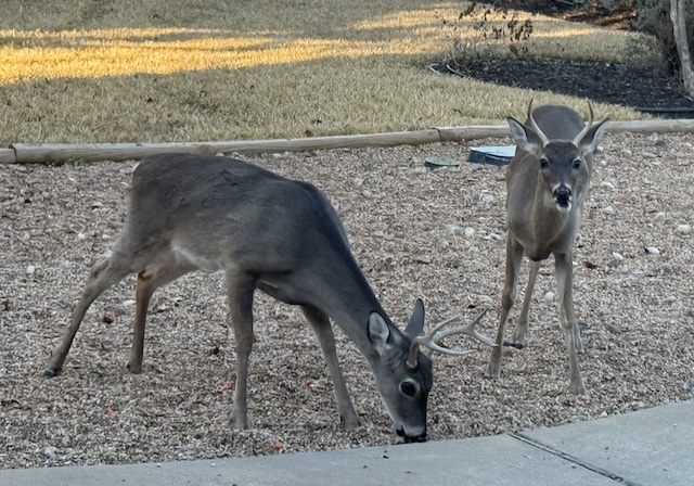 How wonderful that the deer just wander about your neighborhood! Thanks for showing them to us, John.