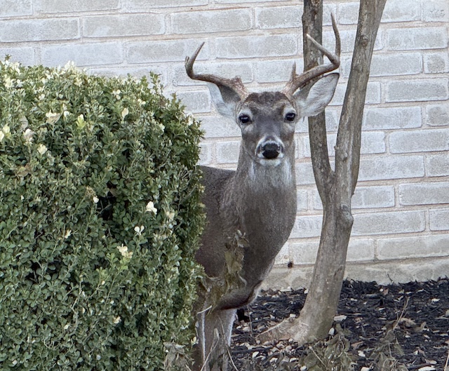 Wow! We sure don’t see that here. For a while, in back of our house were a lot of trees, and I saw a huge buck at our fence, sleeping all day. The new owner of the property cut all the trees down, though.