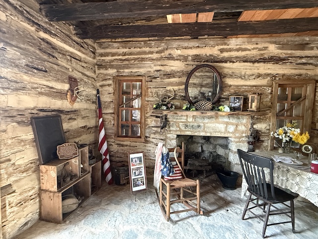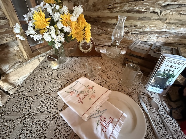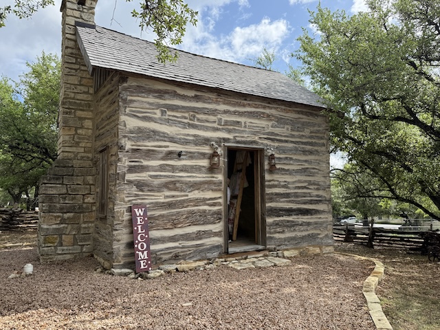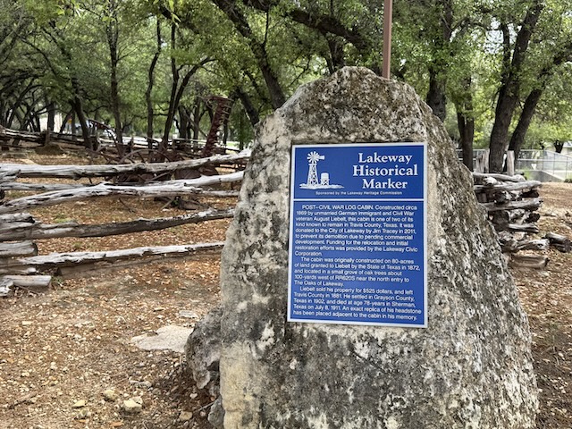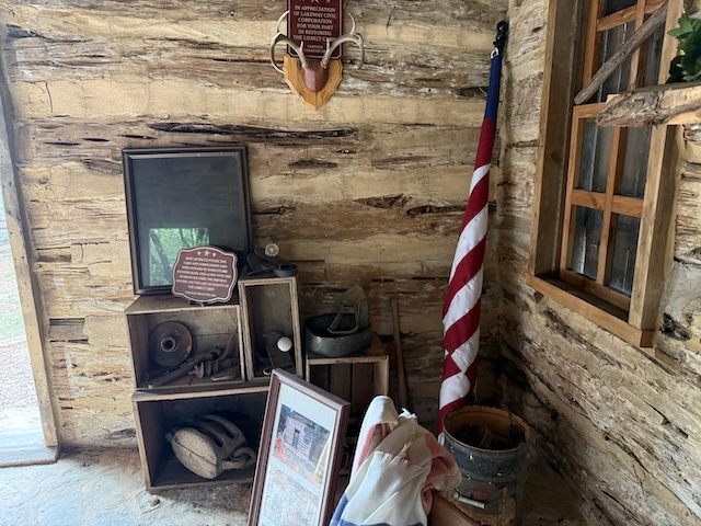 There’s the historical marker explaining that the cabin was relocated to the city hall area in 2011. It is over 150 years old.